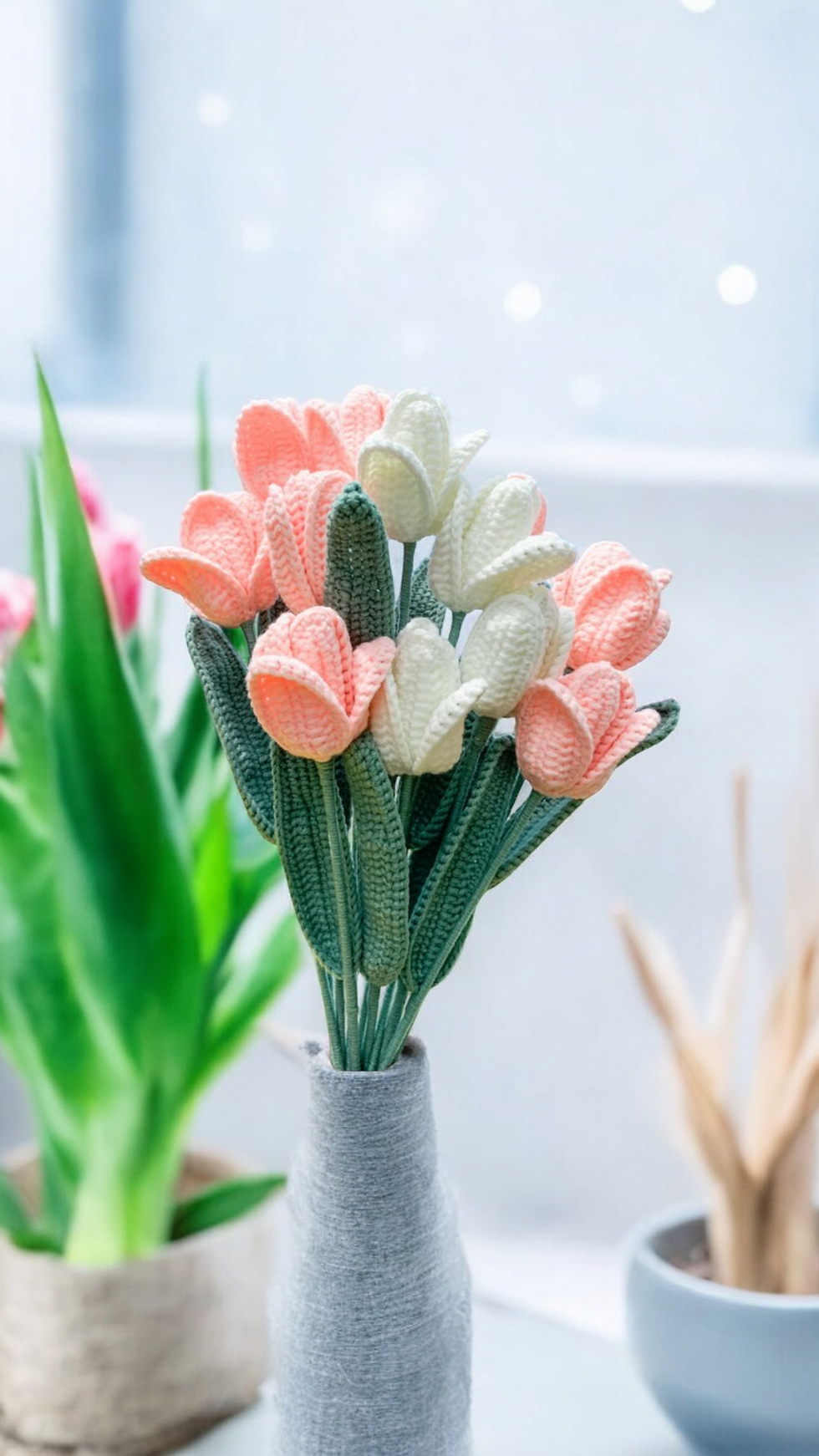 Miniature Hand-Crocheted Multicolor Roses Bouquet